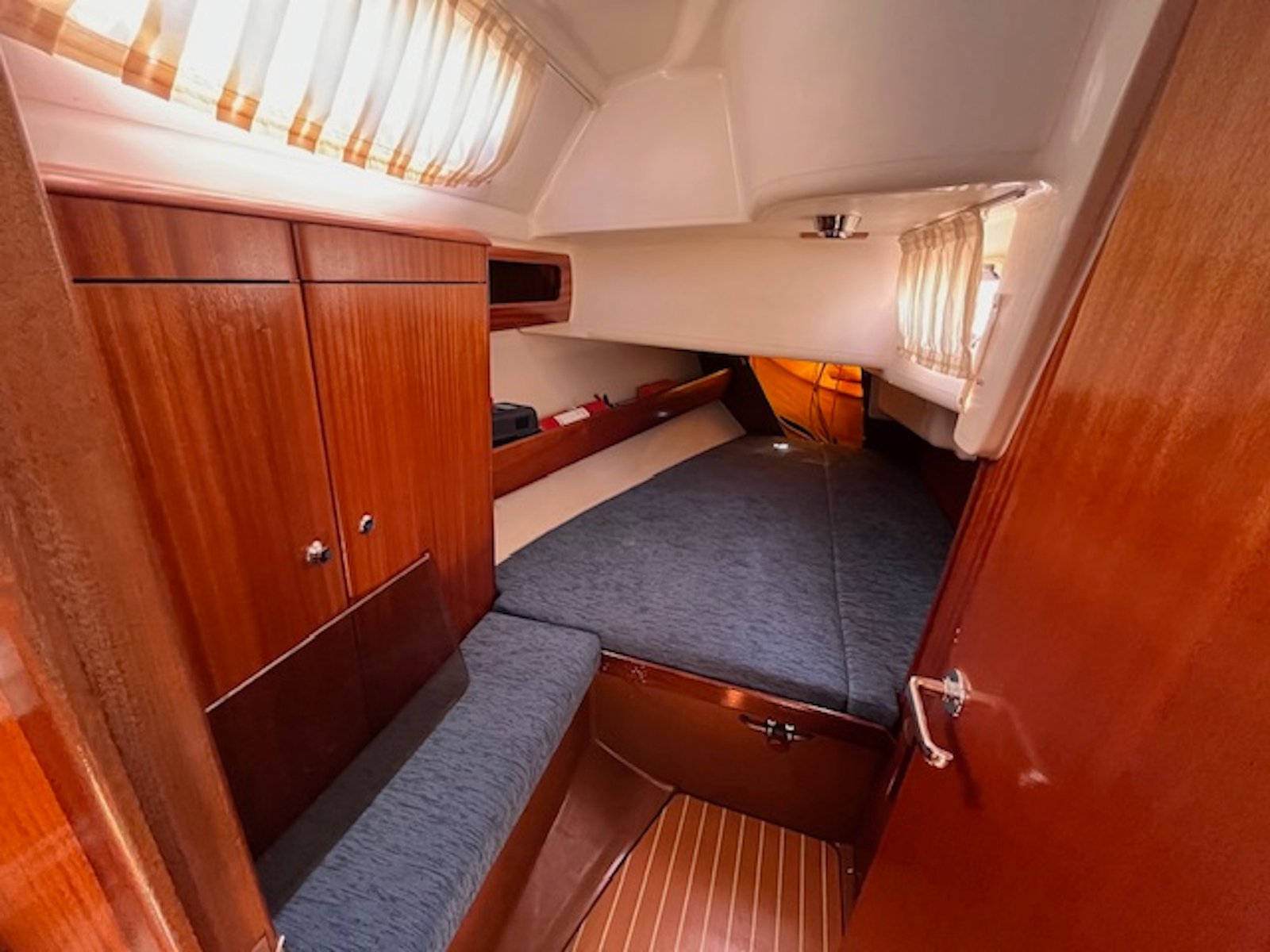 | Mantenimiento | Sustitución junta sail drive 2019. Sustitución codo escape 2022. Limpieza tanque y circuito gasoil 2020. Revisión completa de jarcia firme y cabullería 2017 Sustitución grifos de fondo 2023 Sustitución cargador de baterías 2022 Sustitución baterías 2021 |