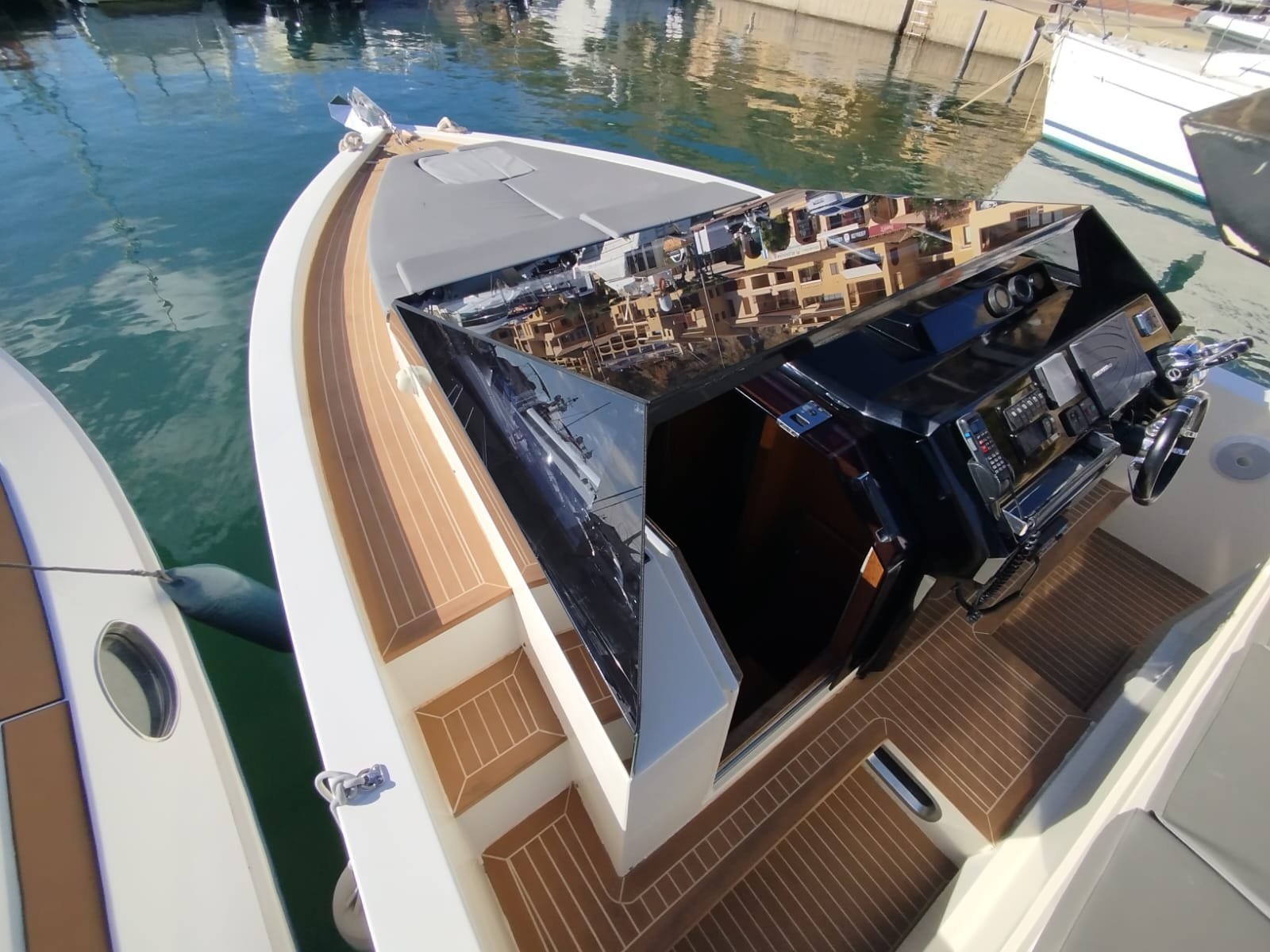 Es De Antonio Yachts D33 Cruiser es un crucero a motor de diseño moderno, eslora aproximada de 9,9 m y enfoque versátil entre day-boat deportivo y crucero ligero con camarote. Está diseñado para usuarios que quieren comodidad, habitabilidad y rendimiento rápido en salidas diarias o escapadas de fin de semana, no para travesías oceánicas prolongadas. Buena habitabilidad para una embarcación de 10 m: soláriums proa/pop, zona social abierta, camarote con cama doble y baño completo en versión Cruiser. Entre sus principales fortalezas cuenta con: Equipamiento y habitabilidad inusuales en su tamaño. Diseño moderno y atractivo. Buen rendimiento para navegación costera o cruceros cortos.